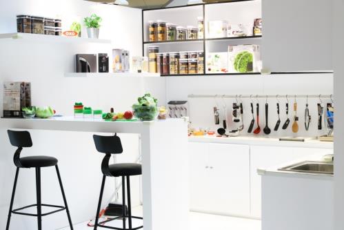 除了互動區,現場還有一塊模擬廚房區域。你可在此體驗OXO奧秀GoodGrips系列的明星用品,如OXO奧秀蔬菜脫水器,單手按壓操作,一鍵脫 水,可以完成簡單的蔬菜清洗及甩干的步驟;還有OXO奧秀手持果蔬螺旋切割器,輕松將水果蔬菜變成粗細均勻的果蔬面條。模擬廚房,為你打造真實的廚房體 驗,感受生活方式的全面升級。