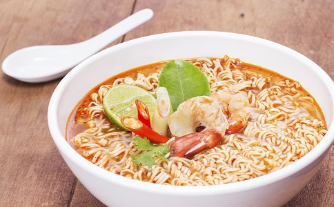 選用一整塊泡面餅用開水泡1分鐘后將面條撈出,倒掉析出油脂的湯汁,再將半熟的面條放入鍋中繼續煮,此時加入1湯匙綠茶粉和切片的半個洋蔥,出鍋時放少許鹽調味即可直接食用。綠茶粉中的茶多酚能抑制脂肪在腸胃壁上附著,同時還能促進人體的排毒系統,加多排尿次數。搭配上能分解血液中脂肪和固醇顆粒的洋蔥,一碗綠茶泡面營養豐富又耐餓,是中餐的最佳選擇。