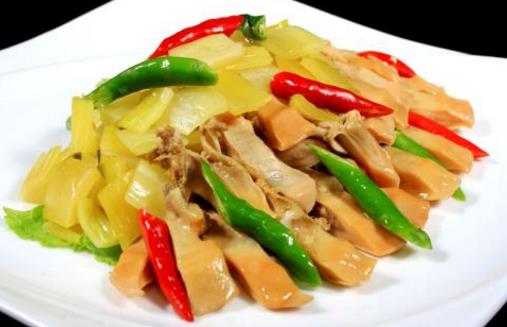 豬腳500克,河蚌肉200克,野山椒50克,植物油30克,精鹽20克,味精5克,白醋20克,料酒15克,姜15克,香蔥10克,鮮湯1000克。
