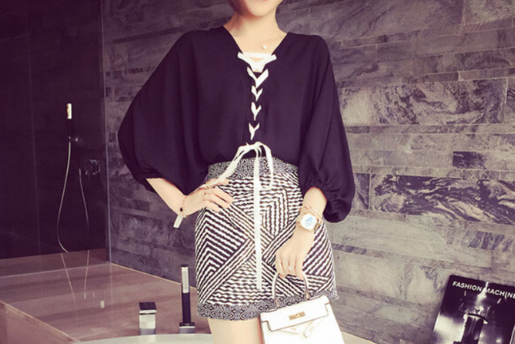 V字領或者是大圓領上衣這樣的可以讓你的肩膀曲線看起來更加的柔和,沒有那么的生硬,還有就是不要選擇條紋的上衣,這樣容易在視覺上,讓你肩膀看起來又寬又腫脹!可以多選擇一些泡泡袖,蝙蝠袖的上衣。