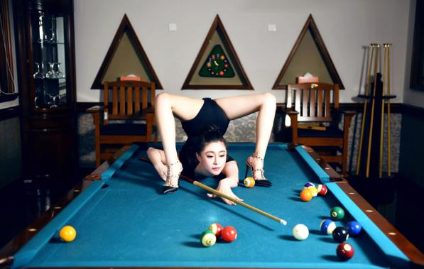性感美女孫菲臺球桌上180度逆天一字馬 解鎖打球新姿勢(一)