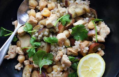 (3)炒鍋燒熱加油,放入腌好的雞丁煸炒變色加鷹嘴豆、蠔油、鹽、糖,大火炒1分鐘即可出鍋。