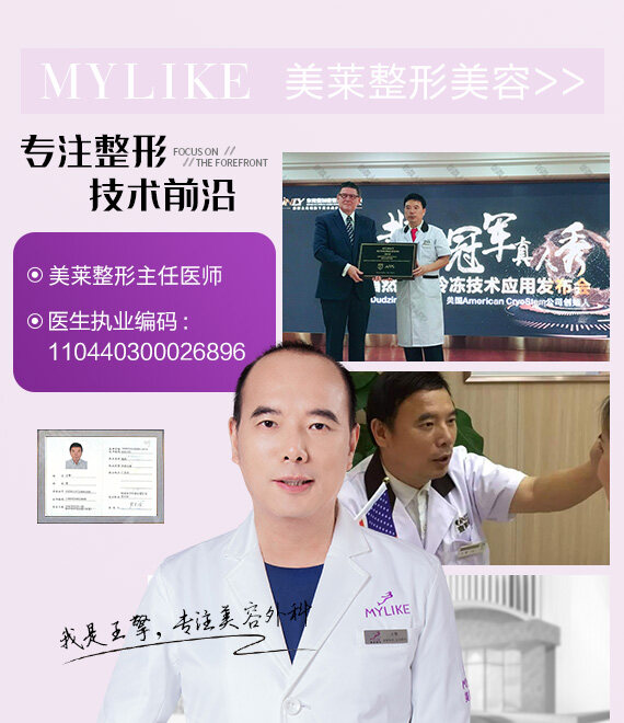 王擎是廈門美萊美容外科主任醫師、南方醫科大學醫學博士、廣東省三甲醫院整形美容外科主任,還是世界內鏡醫師協會中國協會整形外科內鏡與微創專業委員會委員。此外還擁有美國IMPLANTECH公司菲思挺面部植入物中國區技術認證醫師、美國射極峰3D純膨體特聘專家、美國強生曼托&傲諾拉國內指定豐胸導師、黃金微雕指定認證專家等眾多個人榮譽。
