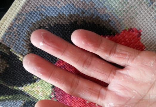 臨床上一般我們可以分成這么兩類,一個就是水皰型的,也是比較急性的,會在手指、指縫之間,手的側緣,也有可能在手掌上,就出現這種水皰,這是水皰型手癬好發的部位。