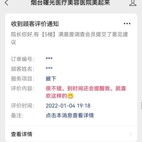煙臺曙光整形創(chuàng)建微信服務體系,包含“剩余項目明細查詢體系”“術后注意事項推送體系”,“微信預約項目體系”,顧客可以通過“曙光美起來”公眾號進行項目自主選擇時間和醫(yī)生預約到院;其次顧客可通過“剩余項目明細查詢體系”清晰查詢自己在院的項目使用和剩余情況,便捷顧客隨時掌握;顧客治療完畢后曙光整形會通過“曙光美起來”公眾號為顧客推送術后注意事項以及項目療后護理等,避免了傳統(tǒng)紙質(zhì)術后注意事項丟失或者不能按時按需提醒的狀態(tài),一系列貼心人性化的服務,讓每一位顧客都賓至如歸。