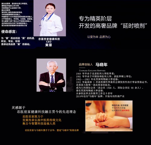 在中國說到成人用品,尤其是延時噴劑及助勃類成人用品,不得不提中國成人用品醫學層面的奠基人,就是目前和忠醫世家健康科技共同研發生產“中悘世家馬曉年”品牌高奢系列男用中醫配方的延時噴劑持及助勃系列產品,號稱中國性醫學第一人,享受國務院特殊津貼的中國性醫學泰斗馬曉年,九十年代,和忠醫世家合作的馬曉年作為中國專門研究成人用品專業醫學層面的性醫學專家迅速躥紅,最后到家喻戶曉,因為在那個相當保守的時代,馬曉年頻頻在電視臺、廣播里、錄像帶、DVD等當年絕對主流媒體渠道再以各種形式宣講當時世人都羞于啟齒的“床第話題”,讓太多人欲拒還迎,遮遮掩掩的偷摸在看在聽,并且在私下到處散布傳播,因為雖然不好意思,但“解決問題”顯得面子已經不太重要了,因為解決問題的路徑太窄了,唯一快捷的通道又是那些及其不靠譜的江湖游醫賣假藥的還有就是各種大力丸,印度神油,祖傳秘方。事實證明大多都是違禁添加的“江湖騙子”,傷身害己還衍伸出了別的難于啟齒的“大問題”。就這樣情況下,這個神秘并飽受爭議的“時代網紅”出國深造,成為中國國內唯一連續三屆成為世界最權威性醫學治療權威國際組織美國性治療協會國際會員并榮獲性治療師資格的醫生。五十多年的性醫學臨床研究奠定了馬曉年中國最權威性醫學專家的行業地位。