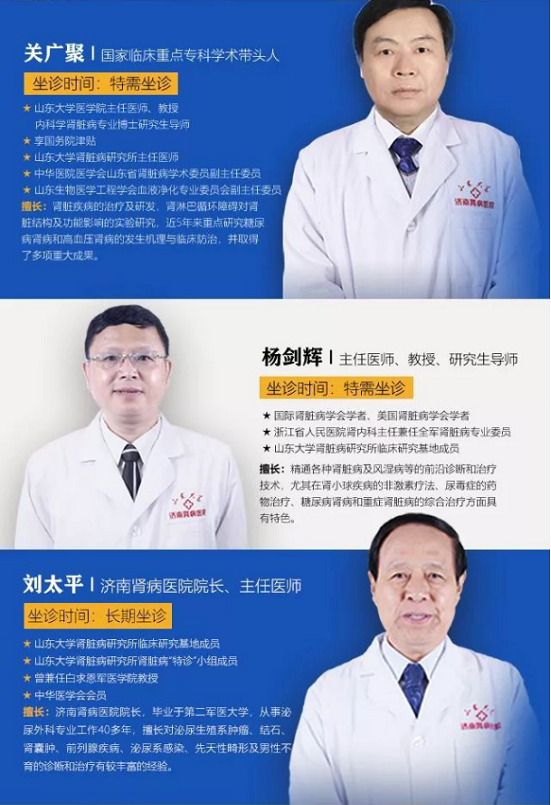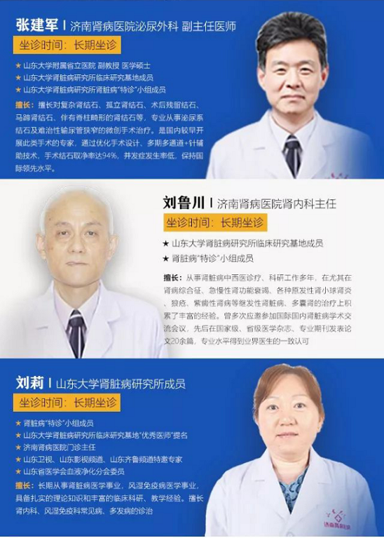 山東大學腎臟病研究所臨床研究基地濟南腎病醫院作為致力于與國際化接軌的專業腎臟病專科醫院,為推動腎臟病學科發展,提升腎臟病診療技術及臨床水平,更好的幫助廣大腎臟病患者擺脫疾病困擾,聯合北京協和醫院、北京大學人民醫院、中日友好醫院、浙江省人民醫院、山東大學第二醫院等三甲醫院專家教授建立長期戰略合作,成立“京魯名醫專家團”,定期開展學術交流與腎臟重大疾病科研探討。