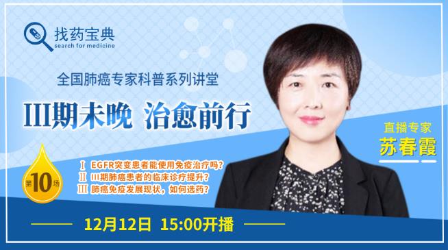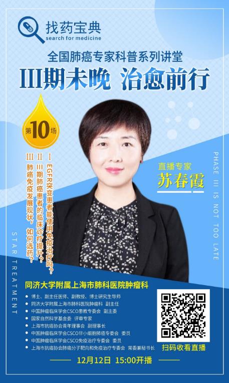上海市肺科醫院腫瘤科 副主任醫師 蘇春霞線上直播:三期肺癌免疫治療如何選藥