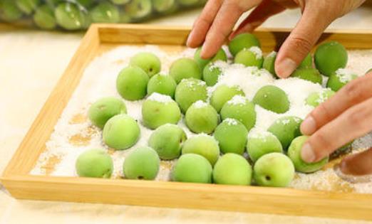 首先要選擇那些肉質比較堅硬,顏色為青綠色的新鮮的青梅,把準備好的青梅放在壇子里面,分層撒入適量的鹽,腌制兩個月之后就可以了,然后把腌制好的青梅用刀切成兩半,去除果核,然后用清水浸泡十個小時。把鹽分去掉,然后去水分。把糖液配成濃度為30%。把青梅放在糖液里面,經過12個小時之后。分批加入白砂糖,15天之后和糖一起在鍋中煮沸,然后進行晾曬,直到青梅表面的糖汁變得粘稠就可以吃了。