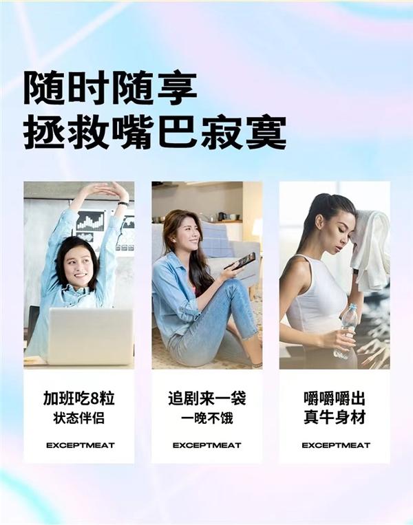 用“除了肉”品牌創(chuàng)始人姜濤先生的話(huà)說(shuō)就是“不好吃的東西,哪怕再健康,也沒(méi)人愿意常吃”。在雙十一首批四款新品:即食牛排、牛肉粒、辣辣棒、未來(lái)CP醬上市后,“除了肉”品牌方更宣稱(chēng)“(產(chǎn)品)與真肉的距離只差1%”。