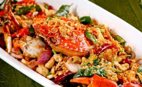 食譜所需原料:1.螃蟹1只,西芹200克,蔥段30克,香菜末30克,2.紅辣椒末1大勺,紅蔥頭末1大勺,洋蔥1/2個1.咖喱粉2大勺,紅糖2小勺2.語錄2大勺,醬油1小勺,椰奶3大勺,水1/2杯