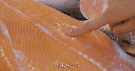 在購買三文魚肉的時候,可以試著在魚肉上按一下,如果肉可漸漸恢復原狀,就證明這塊魚肉很新鮮。如果沒有彈性,就肯定是不新鮮的了。