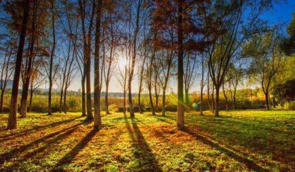 7、和煦的陽光,透過稠密的樹葉灑落下來,成了點點金色的光斑。