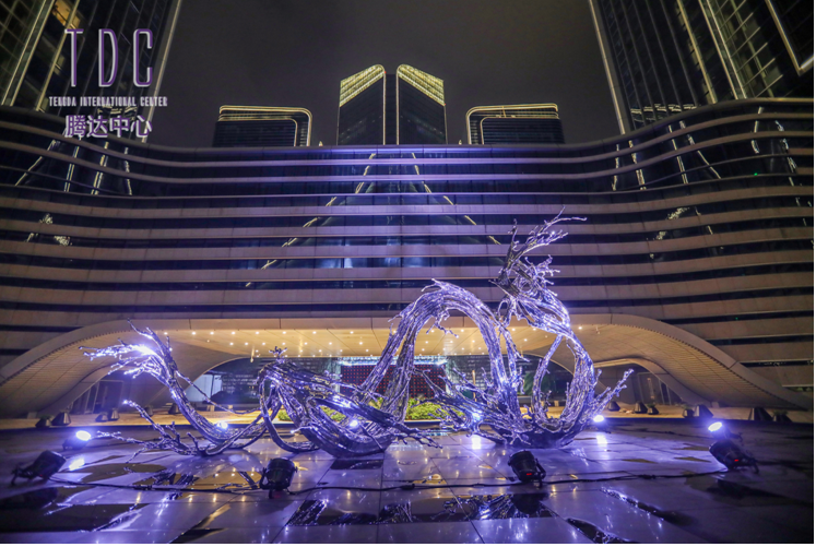 本次活動還有兩位“騰達好友”隆重亮相,名為“風云際會”與“水云扶搖”,他們是騰達集團耗資千萬邀請知名當代藝術家王開方為項目設計的兩大雕塑,騰達希望兩大雕塑可以像守護神般助力商戶順風順水、風生水起。