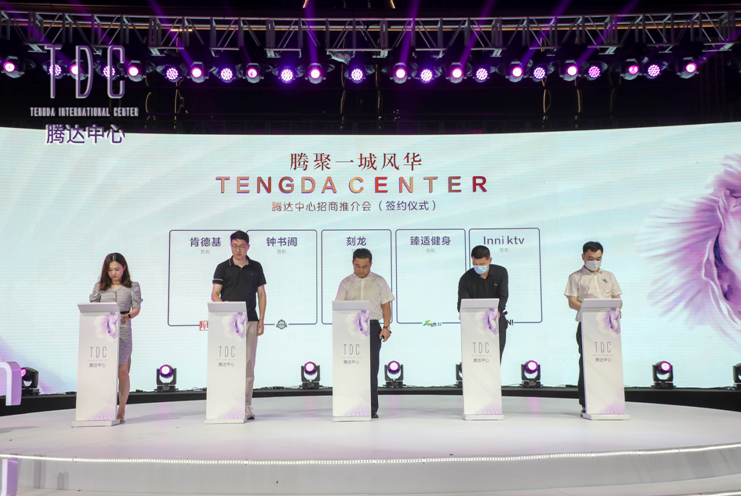 作為此次活動的重要環節,現場舉行了隆重的戰略合作簽約儀式,鐘書閣品牌代表全國區域負責人賈總、肯德基品牌代表蘭總、刻龍餐飲品牌代表梅總、臻適健身品牌代表梁總、INNI KTV品牌代表董事長陳董,均隆重出席并于會場成功簽約,對騰達商業的實力與運營、項目的區位優勢及未來發展都寄予了厚望。
