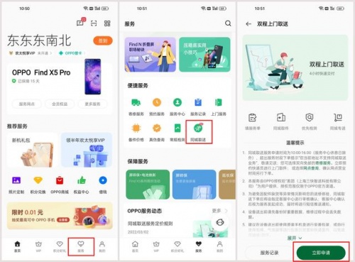 而另一家手機廠商OPPO同樣為用戶提供了諸多優質的服務權益,最近還另辟蹊徑為OPPO Find X系列用戶帶來了一項“同城取送”的新服務。“同城取送”顧名思義,就是在一個城市內雙向的產品取送服務。以往OPPO用戶手機遇到維修問題,需要前往售后中心進行維修。而這個服務的精髓在于OPPO Find X用戶不管是什么樣的問題,即便手機需要貼膜,都可以通過使用“同城服務”來節省時間。