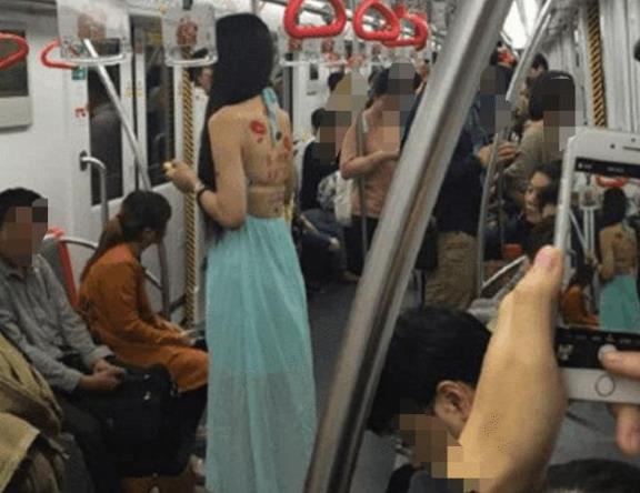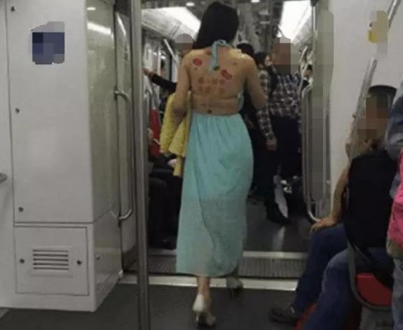 女大學生露后背寫“第一美背,承接廣告” 進地鐵被乘客拍照圍觀