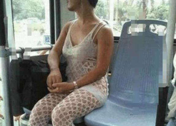 辣眼睛 公交車上男扮女裝穿著暴露身材火辣“奇女子”博眼球