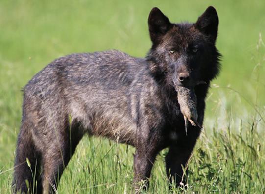 黑狼屬于灰狼的一種變種,在加拿大森林狼或者阿拉斯加苔原狼中均有所產(chǎn)生,這種狼的皮毛為單一的黑色,部分品種胸部以下會有紅色的皮毛,在北美較為常見,美國懷俄明州的黃石國家公園重新引入的狼群中有一半為黑色的狼種。