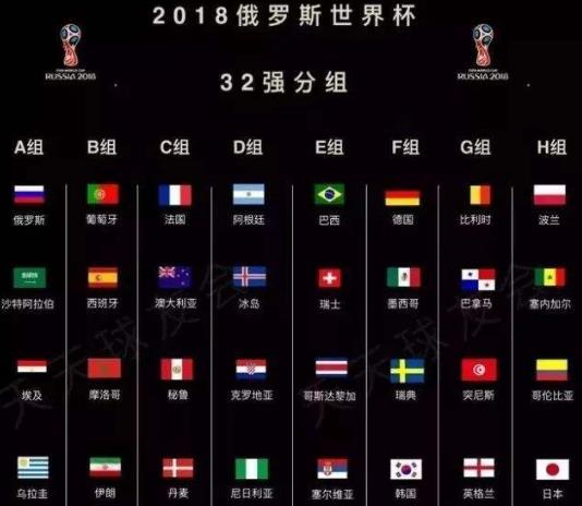 ▼世界杯32強(qiáng)分組一覽: