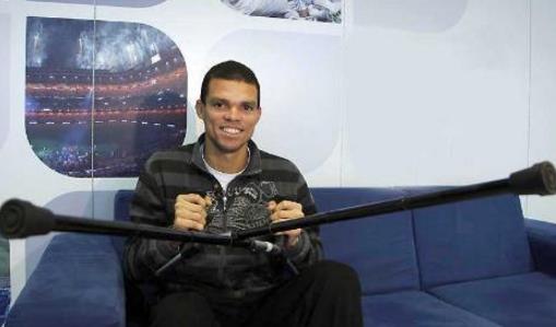 司職中衛的佩佩球風兇悍,但他也有受傷的時候。在同瓦倫西亞的比賽中,佩佩右腿膝蓋十字韌帶撕裂,預計休戰半年。雖然佩佩因此提前告別本賽季,甚至可能無緣世界杯,但生性樂觀的他并不郁郁寡歡。1月7日,拄著拐棍的佩佩回到了皇馬位于巴爾德拜巴斯的訓練基地。心情大好的葡萄牙鐵衛不僅和皇馬隊友們開起了玩笑,還用雙拐對著媒體的攝像機鏡頭做出了示威的動作。