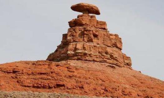 墨西哥草帽石坐落于美國(guó)猶他州圣胡安縣中南部莫紐門(mén)特谷地的附近,是由于風(fēng)化、水流和冰川的侵蝕而形成的,類(lèi)似于墨西哥草帽,因而命名為墨西哥草帽石。你在圖中看到的這塊18米寬、3.7米厚的紅色砂巖只是墨西哥草帽石中的其中之一,在它周?chē)綀A幾英里的地方還分布著許多與它類(lèi)似的石頭。這塊石頭上有兩條選定的小徑,用來(lái)滿(mǎn)足那些希望沿著基座攀爬到墨西哥草帽“帽檐”上的游客。雖然從某種程度上來(lái)說(shuō),它不是嚴(yán)格意義上的平衡石,但它的帽檐和底座之間,確實(shí)只有一個(gè)極其狹窄的“脖子”,仿佛隨時(shí)都會(huì)折斷。