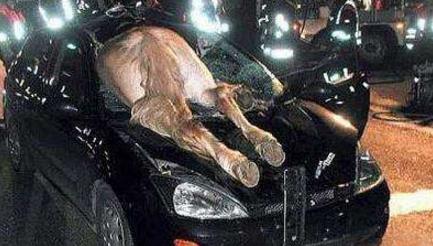 在美國就發(fā)生了這樣的一件不幸的事情—一對夫婦駕車前往他們認識的地方慶祝結(jié)婚周年,在駕駛的路上,突然從空中掉下來一頭中重達291公斤(600磅)的母牛,并且狠狠的砸在這對夫婦的貨車上。所幸夫婦倆都沒受傷。但是這頭不幸嚴重摔傷的母牛卻不得不被實施安樂死。對于這頭牛為何從天而降,至今不得而知。