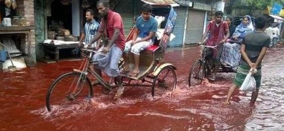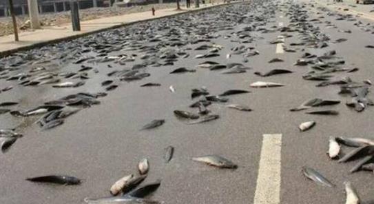 圖片中的街道上積滿了紅色的雨水,至于為什么雨水是紅色的,目前還是未解之謎,有科學(xué)家推測是環(huán)境污染導(dǎo)致的,小編只見過紅色的霧霾,還沒見過紅色的雨水。還有一些科學(xué)家認(rèn)為是紅色海藻的孢子進(jìn)入到了大氣層中進(jìn)行繁殖,最后隨雨水落下。大氣中有海藻那么也可能會有魚吧?