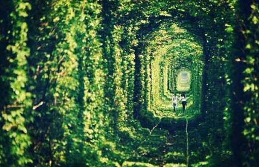 這或許是世界上最浪漫的一條火車道,位于烏克蘭西部的小城Kleven。該隧道長(zhǎng)約2英里,是一個(gè)伐木工廠的運(yùn)輸鐵道。當(dāng)?shù)厝朔Q該隧道為“愛(ài)的隧道”,許多情侶來(lái)到此地許愿。