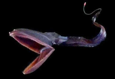 吞噬鰻是一種海魚,生活在深海中,人類并不能經?吹降,但它們偶爾會被漁網捕獲,吞噬鰻的嘴非常大,甚至嘴巴張開后比它的身體都大。它可以吞下比它大得多的魚,它們大多是黑色的,但有些也有白色的條紋。它們實際上是魚類,但它們與鰻魚相似,這就是它們以鰻魚命名的原因。