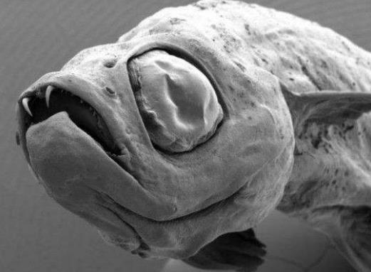 為什么這種小魚在進化歷程中仍保留著牙齒結構呢?科學家經過進一步分析得出結論顯示,這種吸血鬼牙齒般的結構并不是牙齒,而是一種骨骼,或者更準確地說是顎骨的副產物,這些骨骼會刺破皮膚生長形成彎曲的尖狀結構。它的下顎可以張開較大的角度,與身體主軀干呈45-60度。