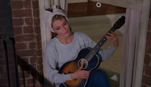 這首《月亮河》是電影Breakfast at Tiffany's中的插曲,于1961年獲第34屆奧斯卡最佳電影歌曲獎。這部電影描寫一位農村姑娘在紐約的生活經歷。幾乎所有的歌手都唱過這首歌《月亮河》(Moon River),但在《蒂凡尼早餐》(Break at tiffany’s)中奧黛麗·赫本的演繹卻是獨一無二的。影片里赫本穿著一條當時最流行的七分褲,頭發上包著頭巾,一個人坐在露臺上自彈自唱,顫抖而微微沙啞的聲線讓樓上的青年作家魂飛天外。一曲歌了,她抬頭一笑,眼睛安詳地眨一眨:“HI1我們幾乎可以聽到作家的心被小箭頭射中的聲音。