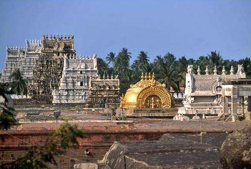 斯里蘭格那塔斯瓦米寺位于印度南部著名城市蒂魯吉拉伯利市斯里蘭格(Srirangam)區(qū),其大部分建筑建于十四世紀(jì)到十七世紀(jì)之間,占地面積631000平方米,是印度最大的寺廟,也是世界上最大的宗教建筑群之一。斯里蘭格那塔斯瓦米寺整體采用德拉威式(Dravidian)建筑風(fēng)格,稍微有點(diǎn)傾斜;廟外圍繞著七層同心圓圍墻,周長可達(dá)4116米,據(jù)說是印度規(guī)模最大的寺廟架構(gòu);同心圓墻上“鑲嵌”著許多雕刻精致、神態(tài)各異的神像,十分壯觀。