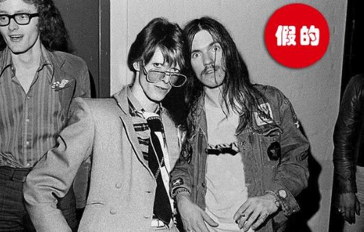 大衛·鮑威(David Bowie,1947年1月8日-2016年1月11日),原名大衛·羅伯特·海伍德·瓊斯(David Robert Haywood Jones),出生于英國倫敦布里克斯頓,英國搖滾歌手、演員。許多人認為大衛·鮑伊和摩托頭樂隊主唱萊米在這張照片上并肩站在一起。但是原照片很容易在網上查找到,事實上,這是萊米和他的女朋友一起的拍照。