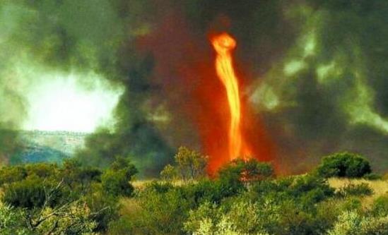 據英國報道,2012年9月17日,澳大利亞愛麗斯斯普林斯地區出現了一高達30米的火焰龍卷風,據目擊者克里斯稱,火焰龍卷風持續時間長達40多分鐘。“火焰龍卷風”出現在偏僻內陸,沒有造成人員傷亡。