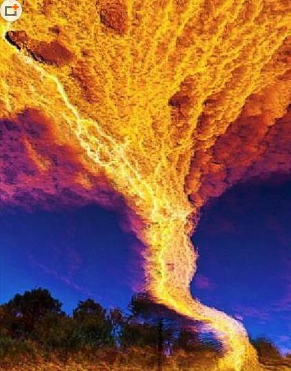 2014年5月3日,美國一名女子拍攝到了罕見的“火焰龍卷風”(“火龍卷”)現象,場面十分壯觀。當時科佩琳開車載著女兒和友人兜風至密蘇里州圣約瑟夫市附近時,當地一個農民正在焚燒田地。令科佩琳十分驚訝的是,田地中竟然出現了一條“火龍”,直沖云天,原來這是難得一見的“火龍卷”現象?婆辶胀O萝噥,拍下這一壯觀的情景并分享到網上!斑@是我見到的最酷、最可怕的事情,”科佩琳說。