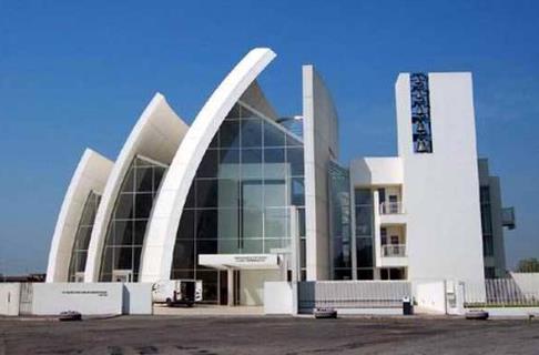 這座教堂可以說(shuō)是歐洲十大著名教堂中最年輕的一座了。于1995年開始設(shè)計(jì),直到2003年才完工。教堂造型別致新穎,整體是三片如同船帆狀的白色弧形墻。