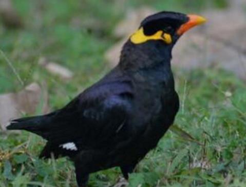 鷯哥體形較大,體重165-258克,體長234-304毫米。全身大致為黑色具紫藍色和銅綠色金屬光澤。特征為頭側具桔黃色肉垂及肉裾,雌雄相似。善鳴,叫聲響亮清晰,能模仿和發出多種有旋律的音調。棲這種鳥長得漂亮也不會怕人。嗜吃野果和昆蟲。一般都是成群活動或者成對活動。