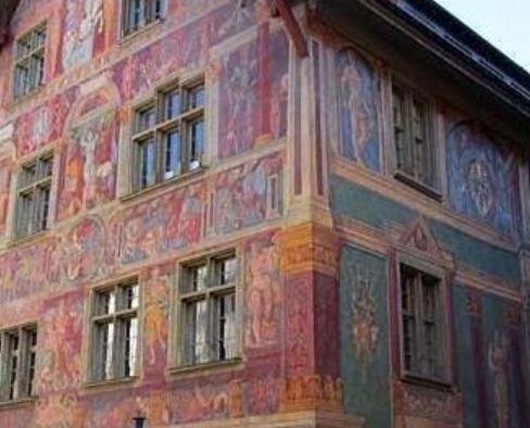 介紹騎士之館是沙夫豪森眾多優美壁畫房屋的代表。它是1566年為騎士漢斯·豐·瓦爾德基希而建的,建筑物外的濕墻壁畫是1568~1570年沙夫豪森著名的畫家特皮亞斯修提曼所繪,題材選自神話和羅馬史,主題在于表現當時的“德”。如今的繪畫由卡爾·雷修加以復原,真品在萬圣教堂博物館里展示。交通從火車站步行7分鐘的路程。