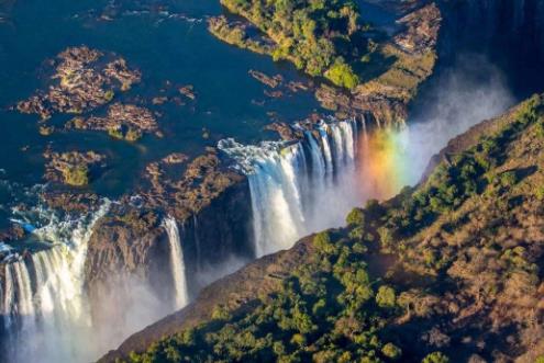 維多利亞瀑布,又稱莫西奧圖尼亞瀑布,位于非洲贊比西河中游,贊比亞與津巴布韋接壤處。寬1700多米(5,500多英尺),最高處108米(355英尺),為世界著名瀑布奇觀之一。歐洲探險家,戴維·利文斯敦1855年在旅途中發現它,并以英國女王的名字為其命名。維多利亞瀑布1989年被列入《世界遺產名錄》。