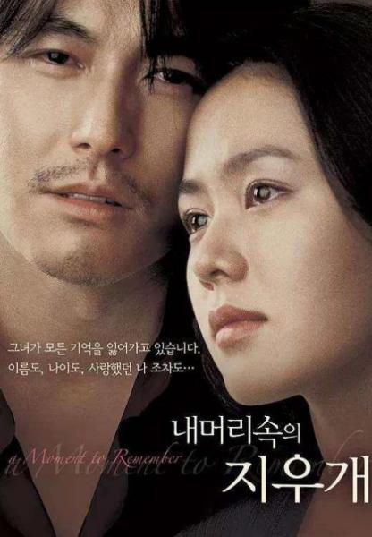《我腦中的橡皮擦》是CJ Entertainment 公司發行的愛情片,由李宰漢執導,鄭雨盛、孫藝珍等主演,該片于2004年11月5日在韓國上映。 該片改編自日本電視劇《Pure Soul》,主要講述了秀真因患阿爾茨海默癥失憶之后,她的丈夫一直守護在身旁的感人故事。