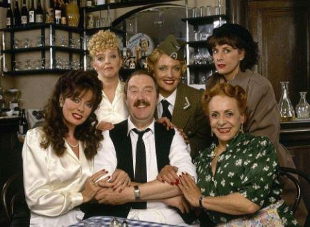 似乎這一切還不夠亂,René是個花心男人。跟咖啡館里的兩個女招待私下偷情,千方百計要瞞過自己的老婆。錦上添花,或雪上加霜的是,抵抗組織的女首領似乎愛上了René!另外,一個娘娘腔德國軍官也看上了這位咖啡館老板,總是向他暗送秋波。