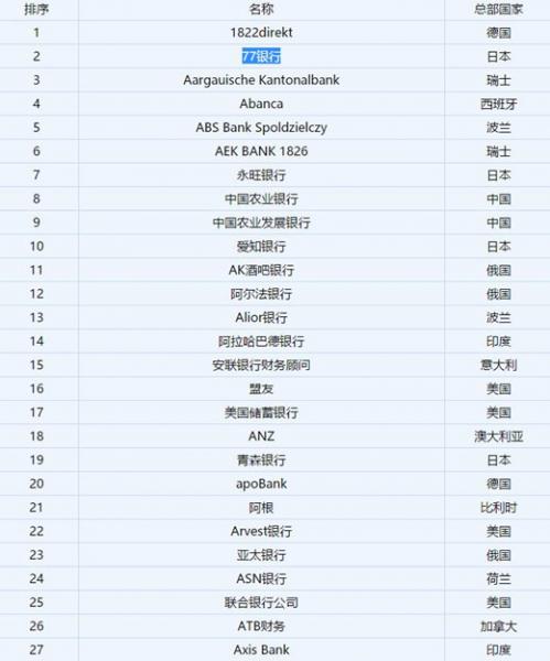2019年福布斯世界最佳銀行排名,德國1822direkt服務最好