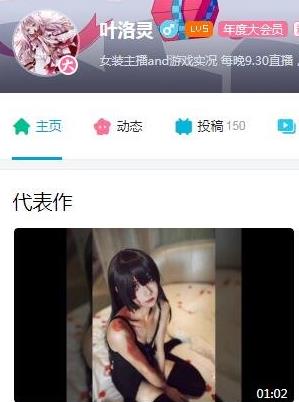葉洛靈主要直播游戲,再加上錄制一些女裝視頻,不過講真的這位UP主并不十分像妹子啊,還是有隱隱約約的男子氣概透露出來,不過女裝玩游戲這個梗也是比較好玩比較有趣的。