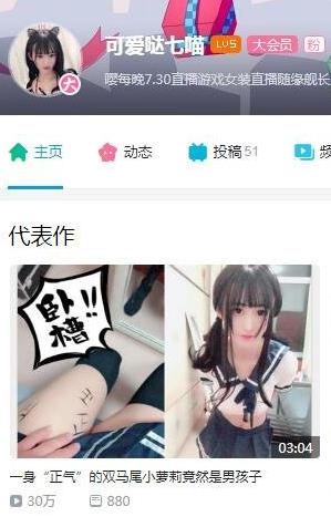 這位UP主從投的第一個視頻起,就是女裝大佬的視頻,每日的日常就是各種穿著女裝調戲別人,各種好玩的視頻都讓人捧腹大笑,當然這不能否認是因為女裝大佬的緣故才被這么多人關注,但是實際上這位小哥哥也是超級有趣啊。