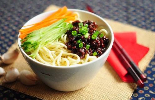 老北京炸醬面獨具北京當地的特色,醬料一般會使用甜面醬制作,加上肉丁蔥姜炒制澆到“過水面”上,再拌入黃瓜、香椿、豆芽、青豆等配料,是老北京人最愛的主食之一。