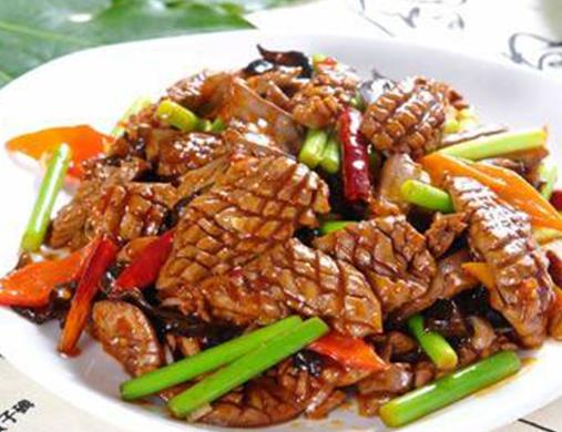 打了花刀的腰花,會比沒有處理過的腰花更易熟,而且還不容易炒老。這也是唐山的一道傳統(tǒng)名菜。