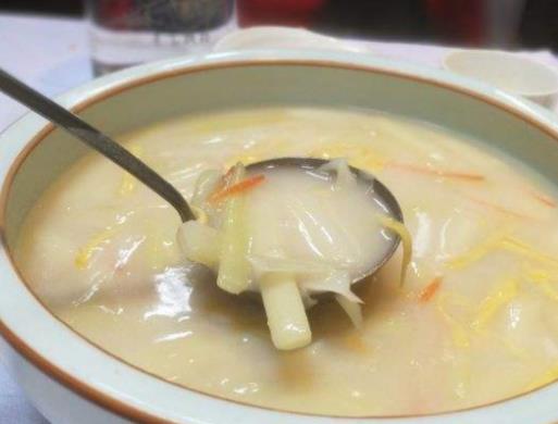詳細介紹:奶湯蒲菜,是山東省濟南市地區的特色傳統風味名菜之一。制作時用奶湯和蒲菜烹制而成,湯呈乳白色,蒲菜脆嫩鮮香倍增,入口清淡味美,是高檔宴席之上乘湯菜,素有“濟南湯菜之冠”的美譽,又歷來被人們譽為濟南第一湯菜。