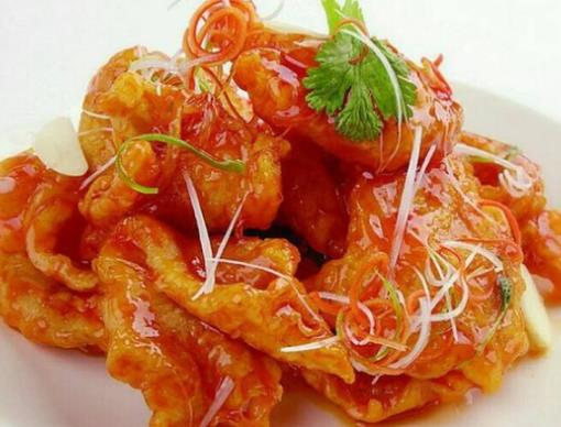 鍋包肉是為適應外賓口味,把咸鮮口味的“焦燒肉條”改成了一道酸甜口味的菜肴。通常將豬里脊肉切片腌入味,裹上炸漿,下鍋炸至金黃色撈起,再下鍋拌炒勾芡即成。