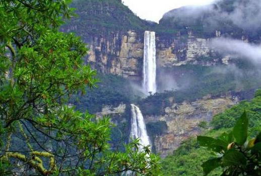 天使瀑布是位于委內瑞拉玻利瓦爾州卡奈依馬國家公園奧揚特貝的瀑布。它被認為是世界上最高的不間斷的世界瀑布,高度為979米。天使瀑布落下過的邊緣奧揚特貝山在卡奈依馬國家公園中的區域玻利瓦爾州,它包括約400米的傾斜級聯在它的下降和急流之下,另一個特色包括在距骨急流下游30米高的急流。天使瀑布是大自然中最神奇的生物,也是世界上最美妙的瀑布。瀑布為密林遮掩,宜從空中賞看。